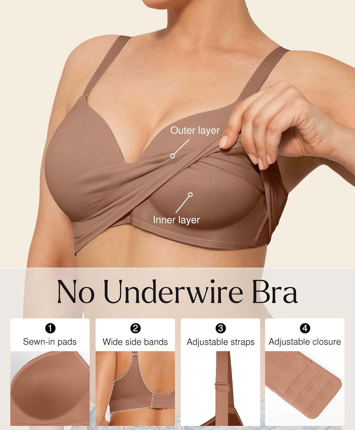 - Buttery-Soft, All-Day Comfort: Indulge in luxuriously smooth comfort with our premium skin-friendly fabric, the buttery-soft material caresses your skin with a barely-there feel, minimizing friction for seamless wear, perfect for 24-hour days—whether early morning commutes to late night films, this bras for women no underwire stay irritation-free through every activity
