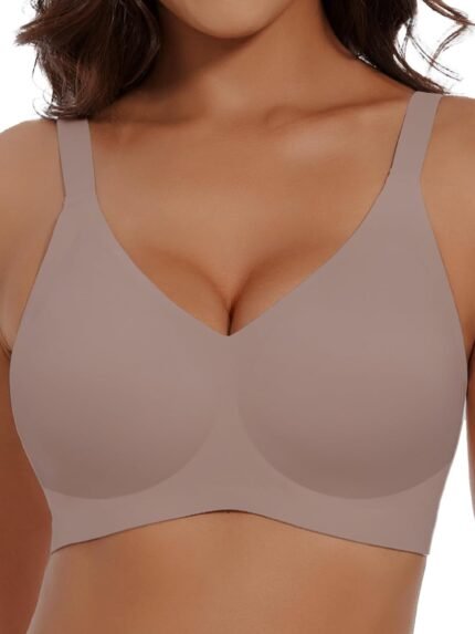 - Newest Jelly Strip Technology: 3D Stretch and total seamless appearance makes this plus bra for women plus size perfectly fits your body shape, V-neck design better shows off your curves