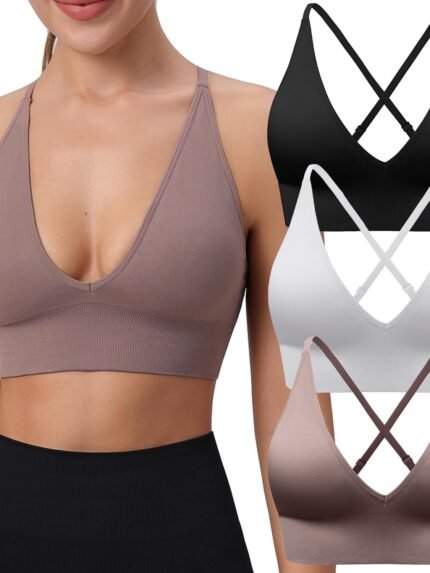 Padded Sports Bras for Women: Support Strappy Adjustable Straps Cross Back Sport Bra Pack for Workout Yoga Running Gym