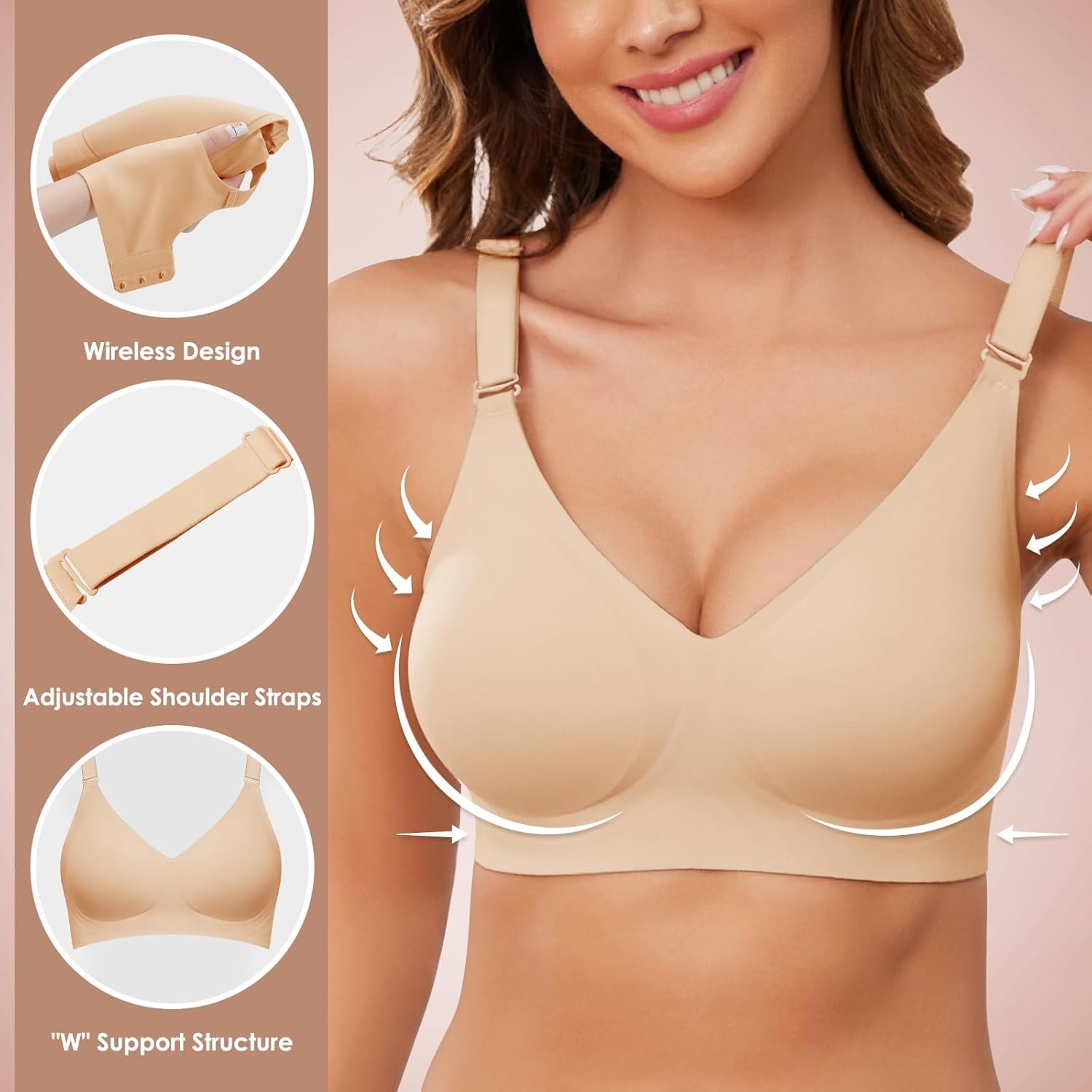 - Wireless Bras for Women – This bra is a wire-free, seamless and comfortable underoutfit bra. It’s designed to deliver full support for natural-looking curves.