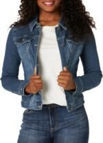 - CLASSIC FIT. Constructed with comfort in mind, this Women denim jacket has a classic fit and offers give where you need it while still providing a classic straight fit